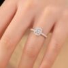 Anillo de compromiso con deslumbrante moissanita central rodeado por un halo radiante