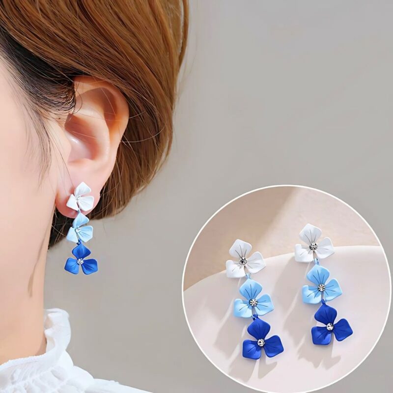 Diseño colgante de flores en caída con colores que evocan el cielo y el mar. Un accesorio lleno de frescura, ideal para quienes aman lo diferente y colorido.