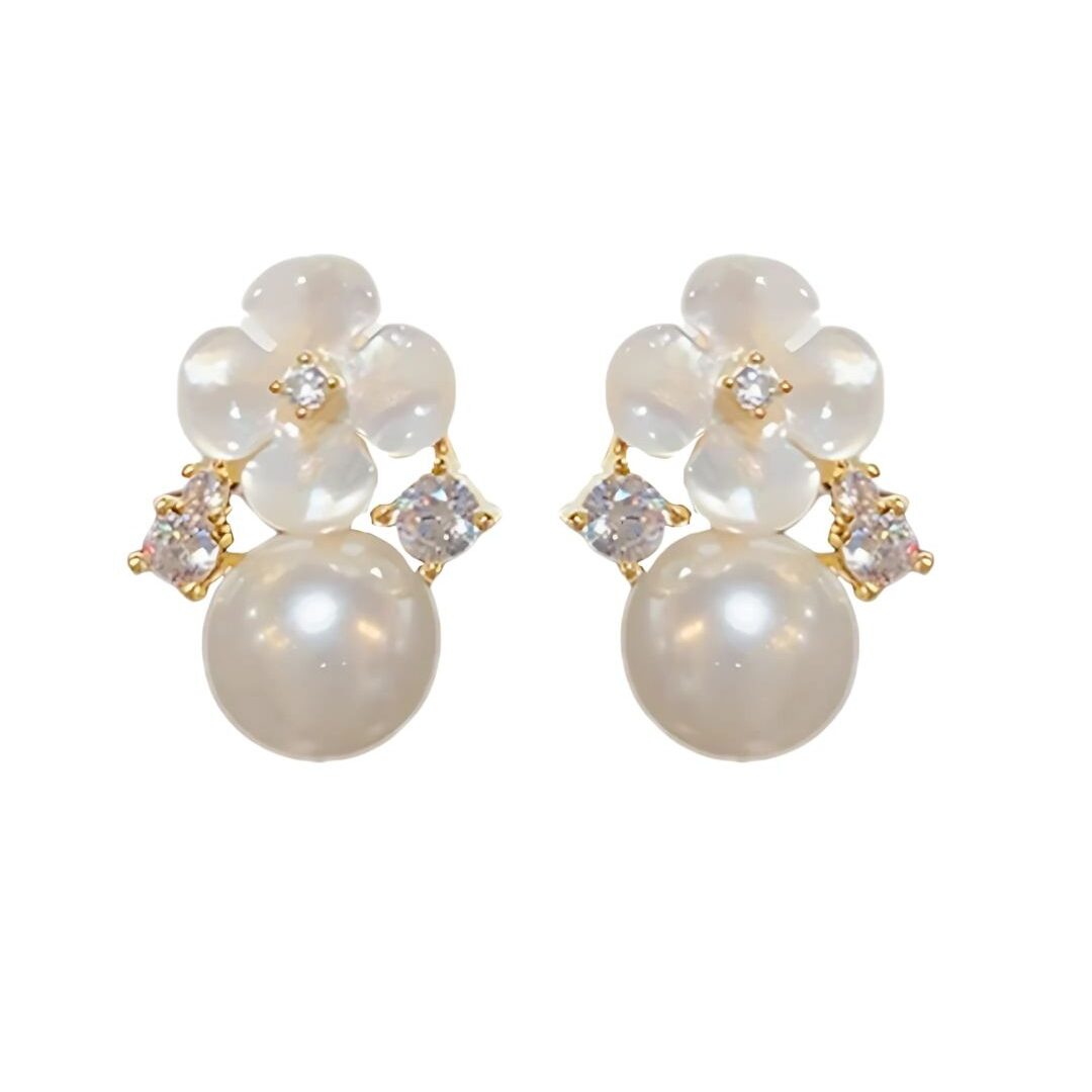 Aretes con flores de perlas que se agrupan como un ramo, con zirconias que añaden un toque de brillo y sofisticación