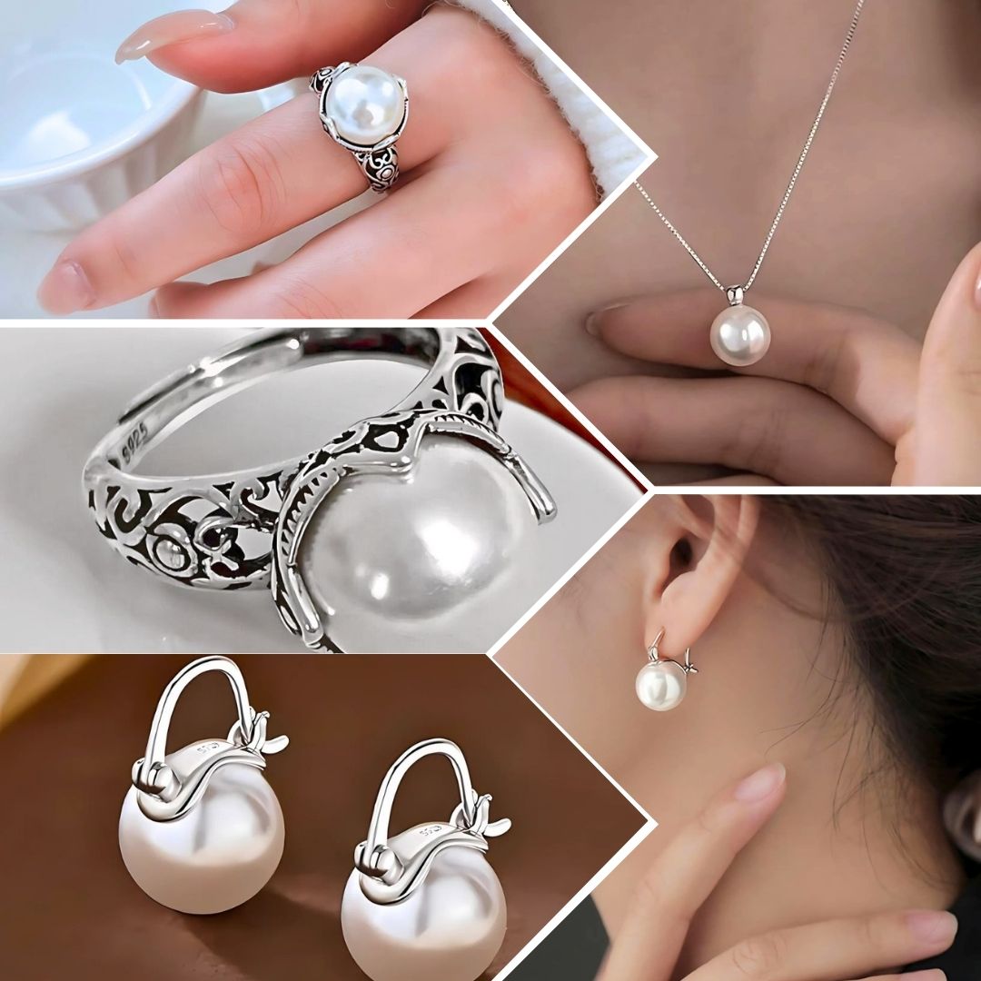 SET PERLA DE ARETES , ANILLO Y COLLAR