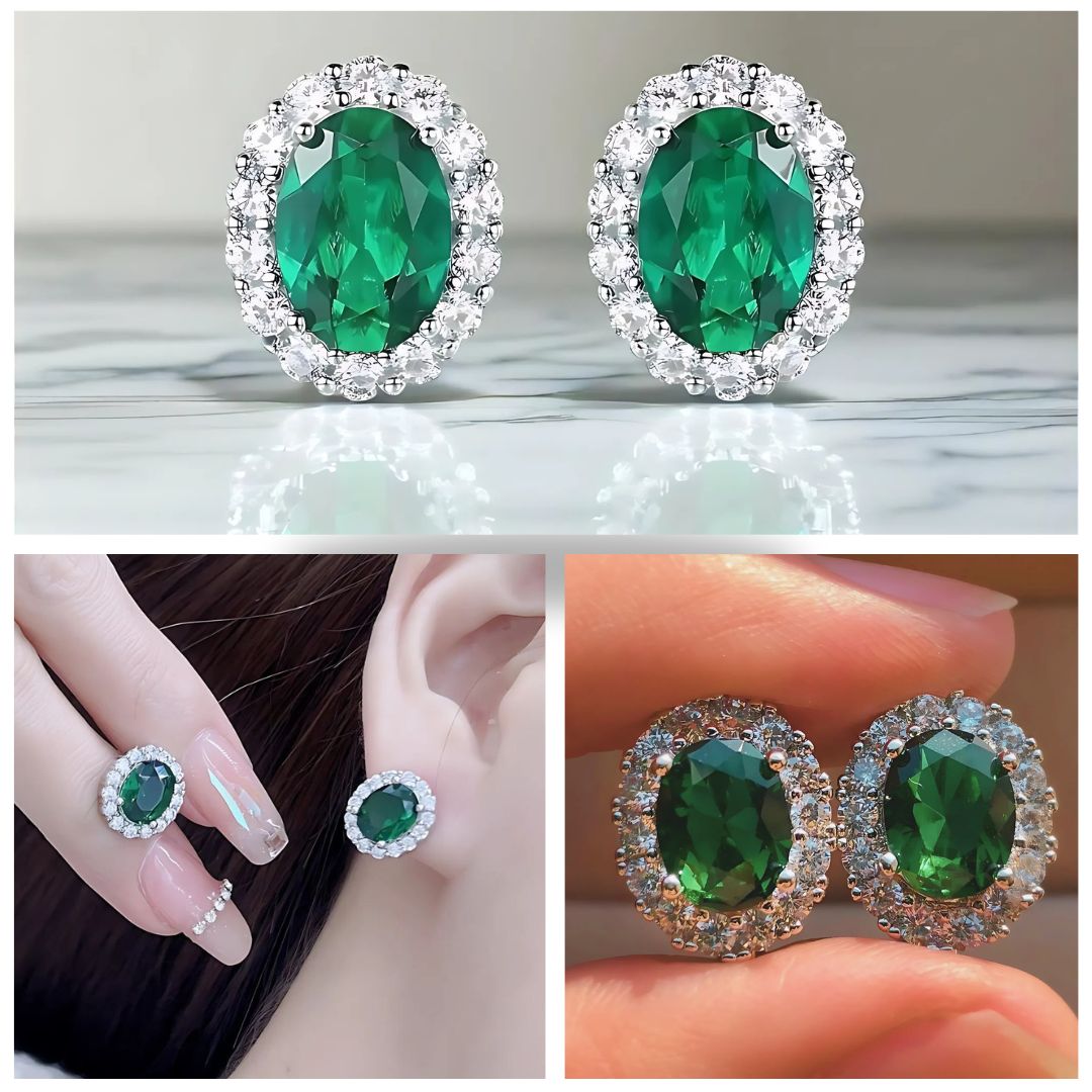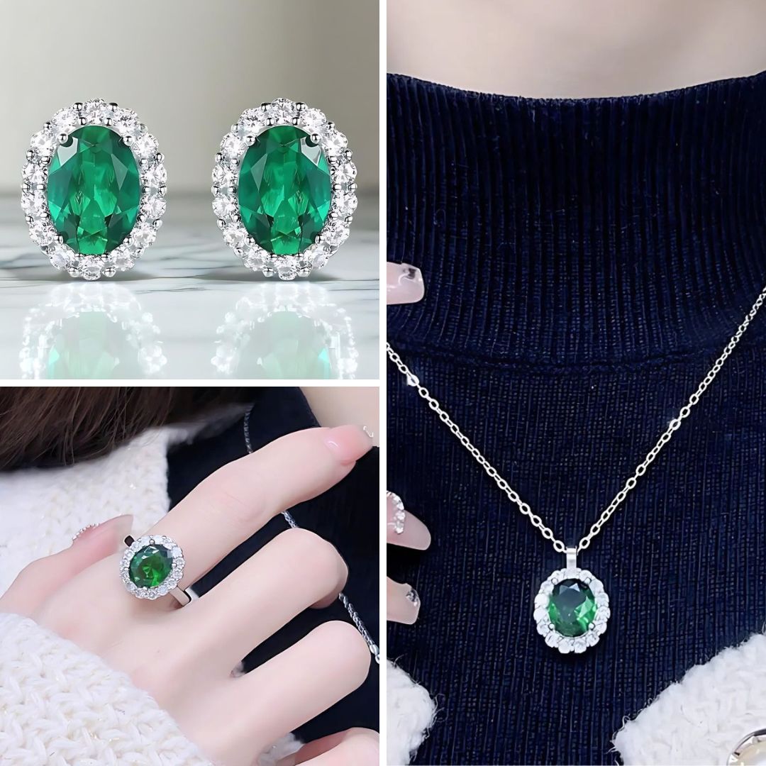 SET VERDE REINA ARETES , ANILLO Y COLLAR