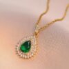 Un collar que destaca por su zirconia central en forma de lágrima, rodeada de zirconias que simulan que destacan su brillo.
