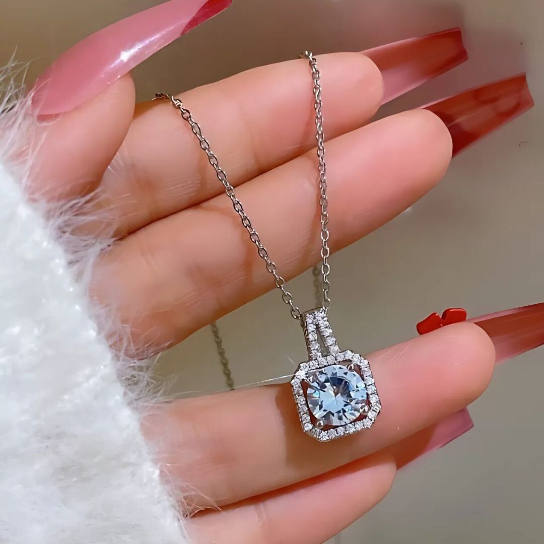 Un collar que destaca por su zirconia central, rodeada de mas zirconias que simulan una órbita helada, ideal para un look luminoso y llamativo.