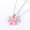 Un collar con un diseño clásico de trébol con zirconia central, reinterpretado en plata .925 rosa que aporta un toque de suerte y brillo a tu outfit
