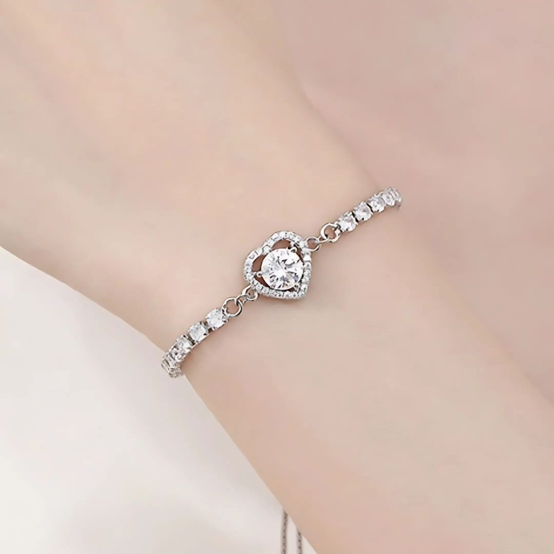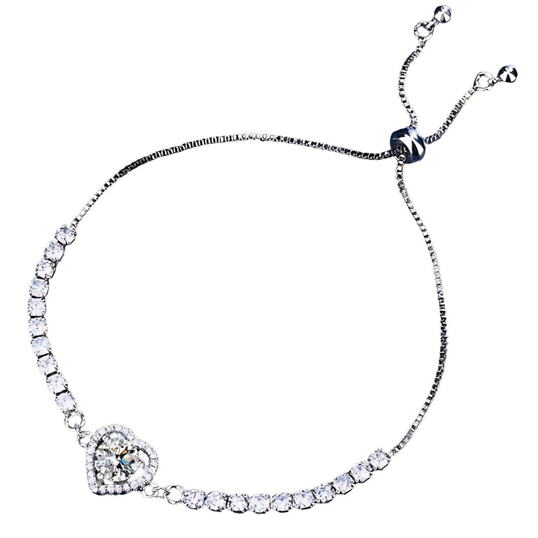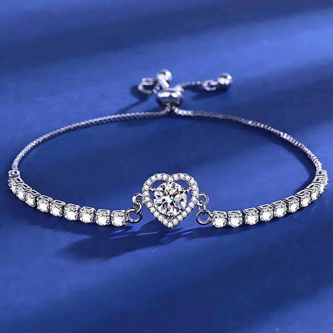 Una pulsera que celebra la belleza de los detalles, con un corazón de moissanita rodeado de circonitas que crean un efecto deslumbrante.
