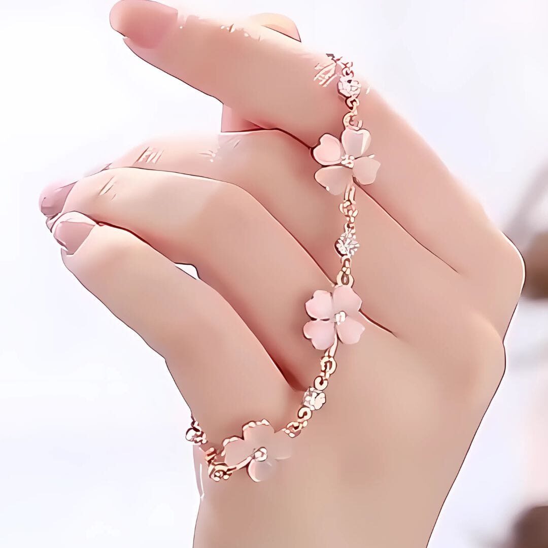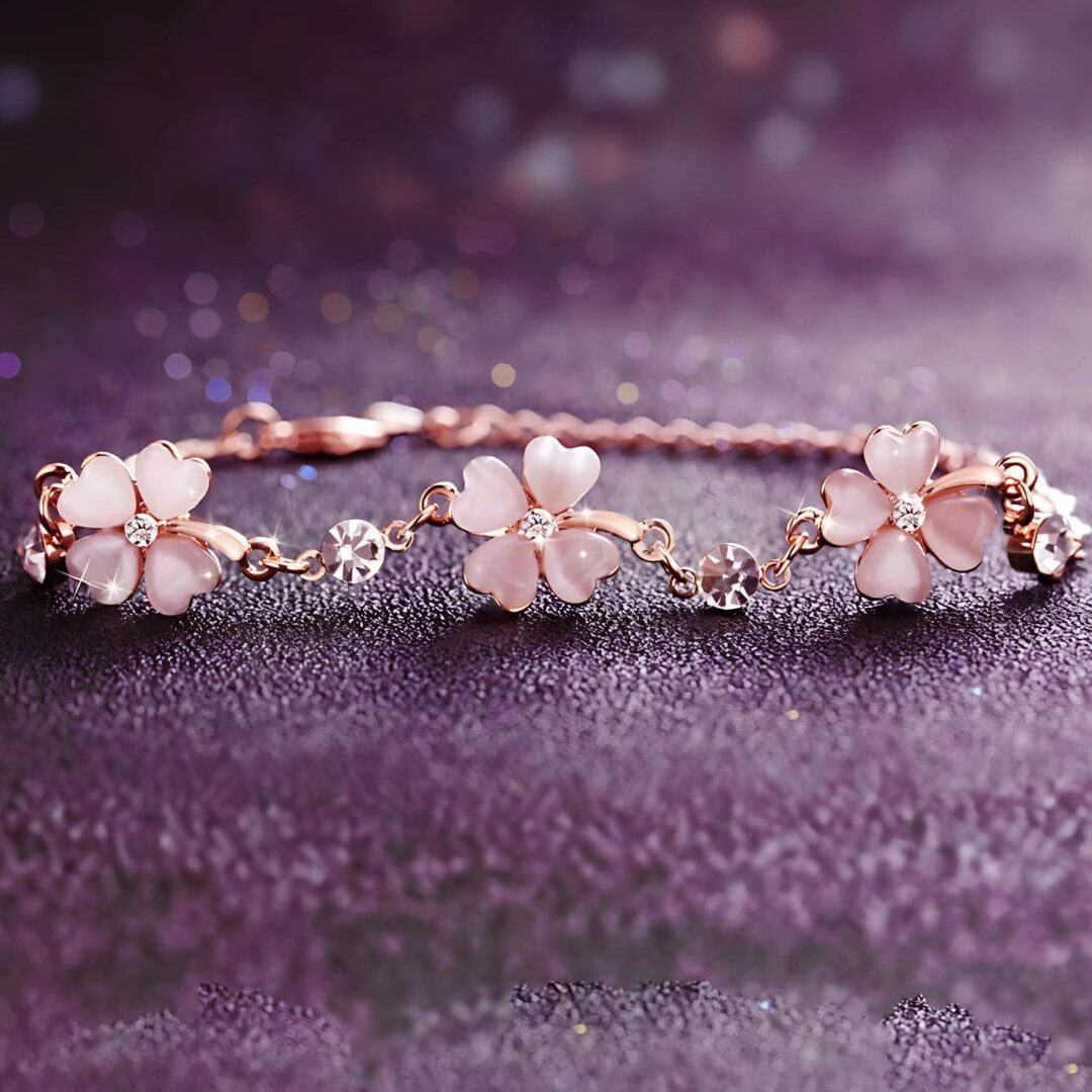 Pulsera con dijes de trébol y zirconias. Una pieza atemporal de plata rosa que irradia suerte y elegancia