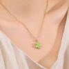 Este elegante set de collar, anillo ajustable y aretes bañados en oro es más que un accesorio; es un amuleto de buena suerte y calma. Diseñado con materiales de alta calidad y detalles meticulosamente elaborados, cada pieza cuenta con un trébol giratorio que ayuda a reducir el estrés y atraer energías positivas.