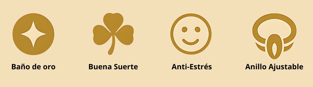 Este elegante set de collar, anillo ajustable y aretes bañados en oro es más que un accesorio; es un amuleto de buena suerte y calma. Diseñado con materiales de alta calidad y detalles meticulosamente elaborados, cada pieza cuenta con un trébol giratorio que ayuda a reducir el estrés y atraer energías positivas.